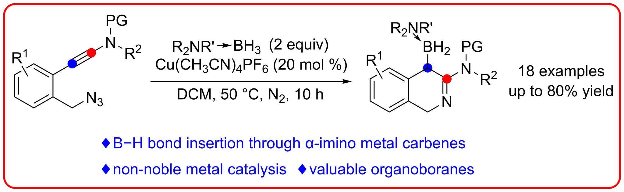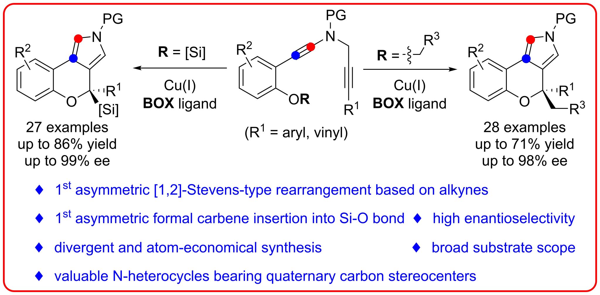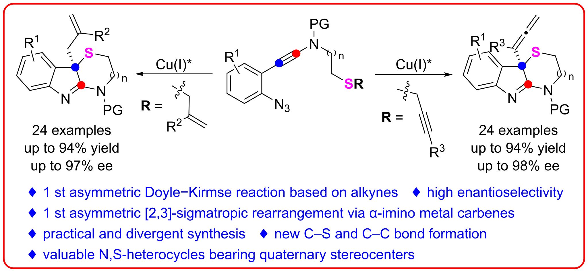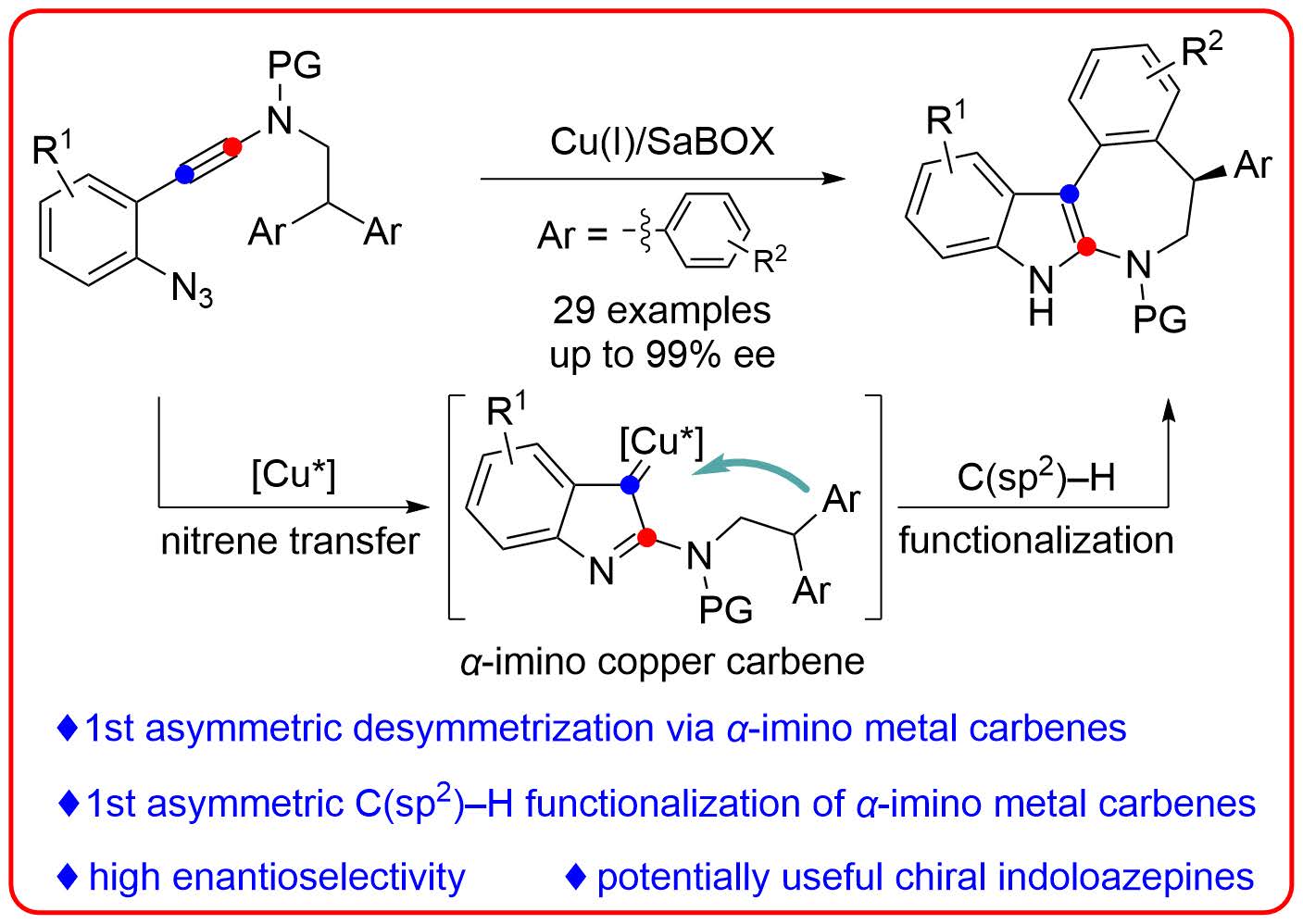 163. Copper-catalyzed enantioselective desymmetrizing C(sp2)–H functionalization of azide-ynamides via α-imino copper carbenes.