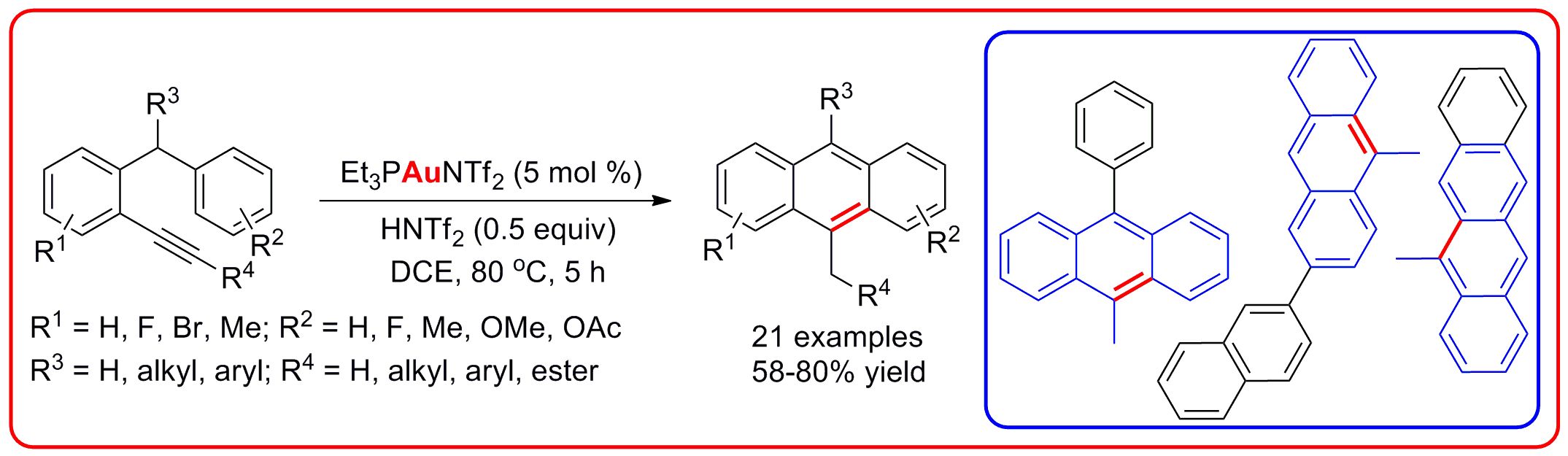 29. Flexible and Practical Synthesis of Anthracenes through Gold-Catalyzed Cyclization of o-Alkynyldiarylmethanes.