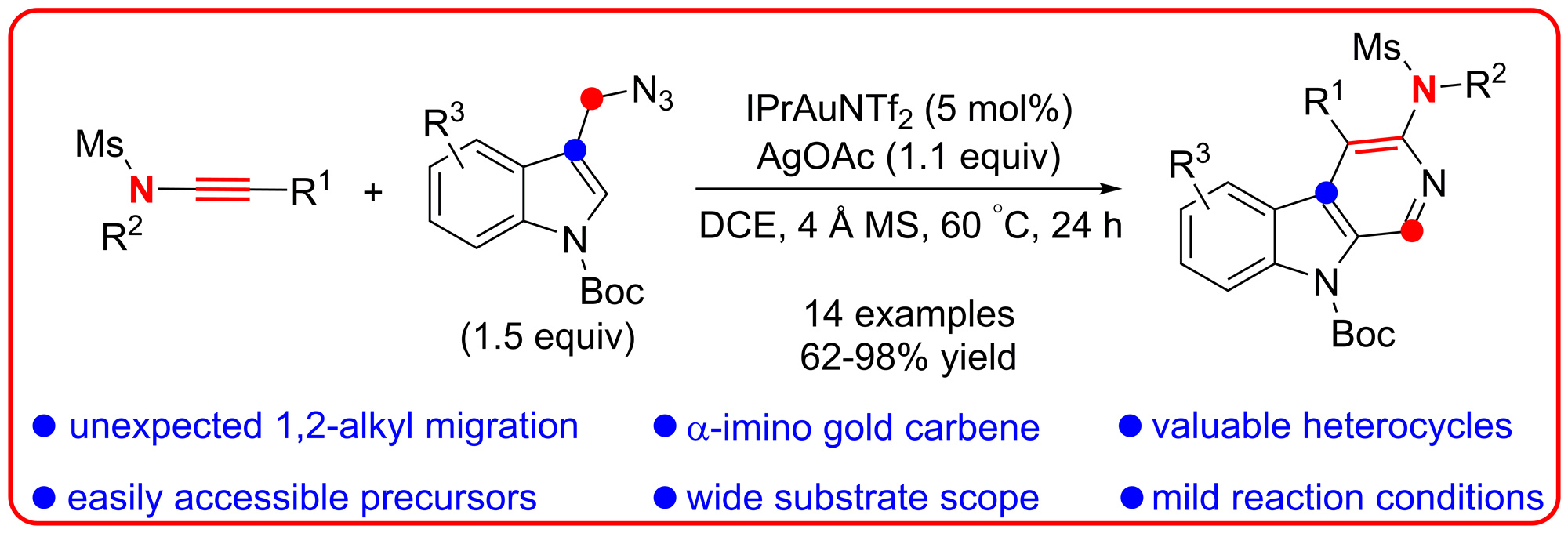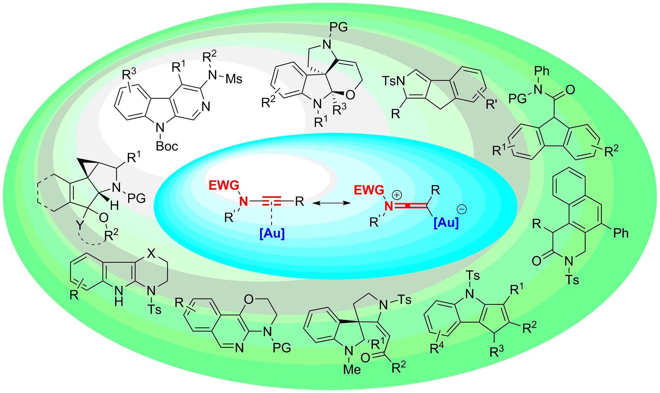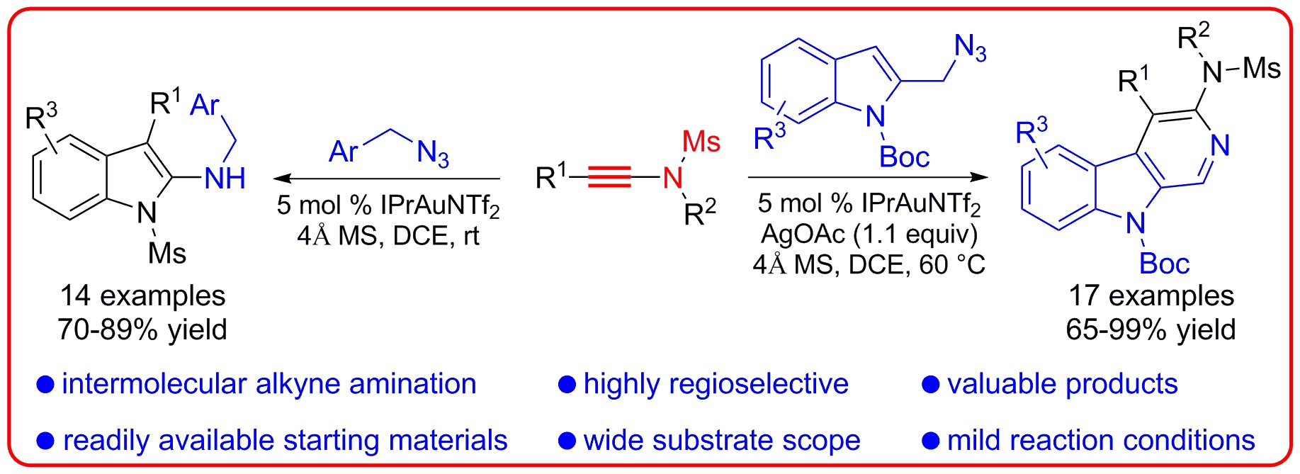 42. Facile and Efficient Synthesis of [1,4]Oxazino[3,2-b]indoles and 1H-Pyrazino[2,3-b]indoles through Gold-Catalyzed Cascade Cyclization of (Azido)ynamides.