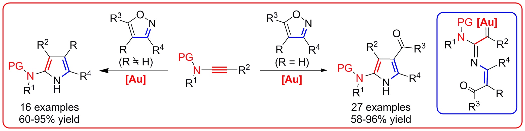 46. Atom-Economic Synthesis of Fully Substituted 2-Aminopyrroles via Gold-Catalyzed Formal [3+2] Cycloaddition between Ynamides and Isoxazoles.