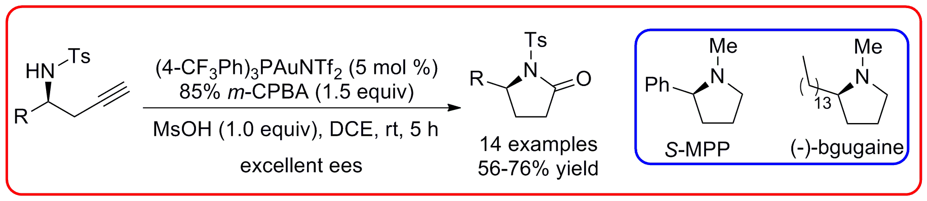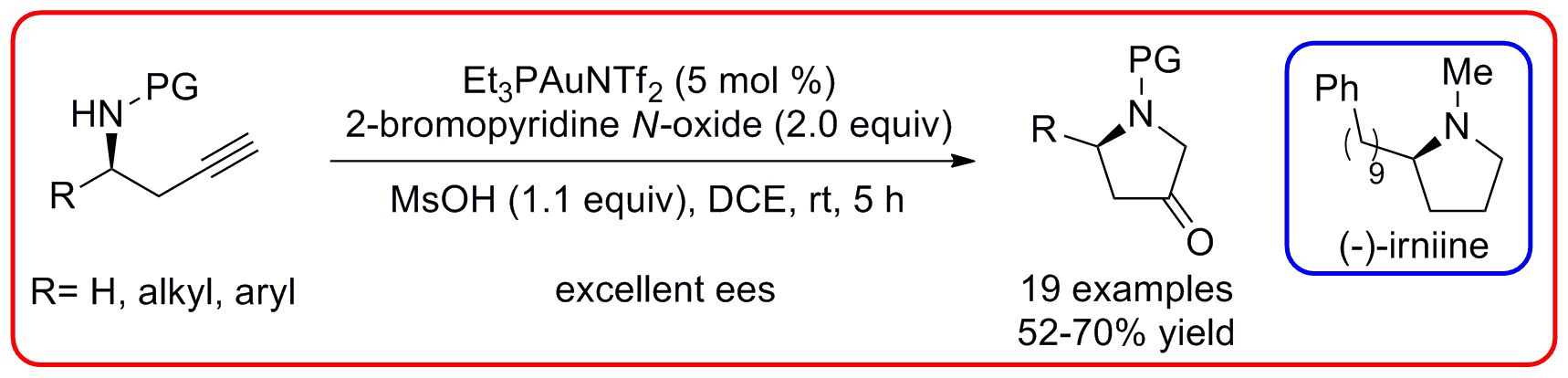 31. Gold-Catalyzed Intermolecular Oxidation of Chiral Homopropargyl Sulfonamides: A Reliable Access to Enantioenriched Pyrrolidin-3-ones.