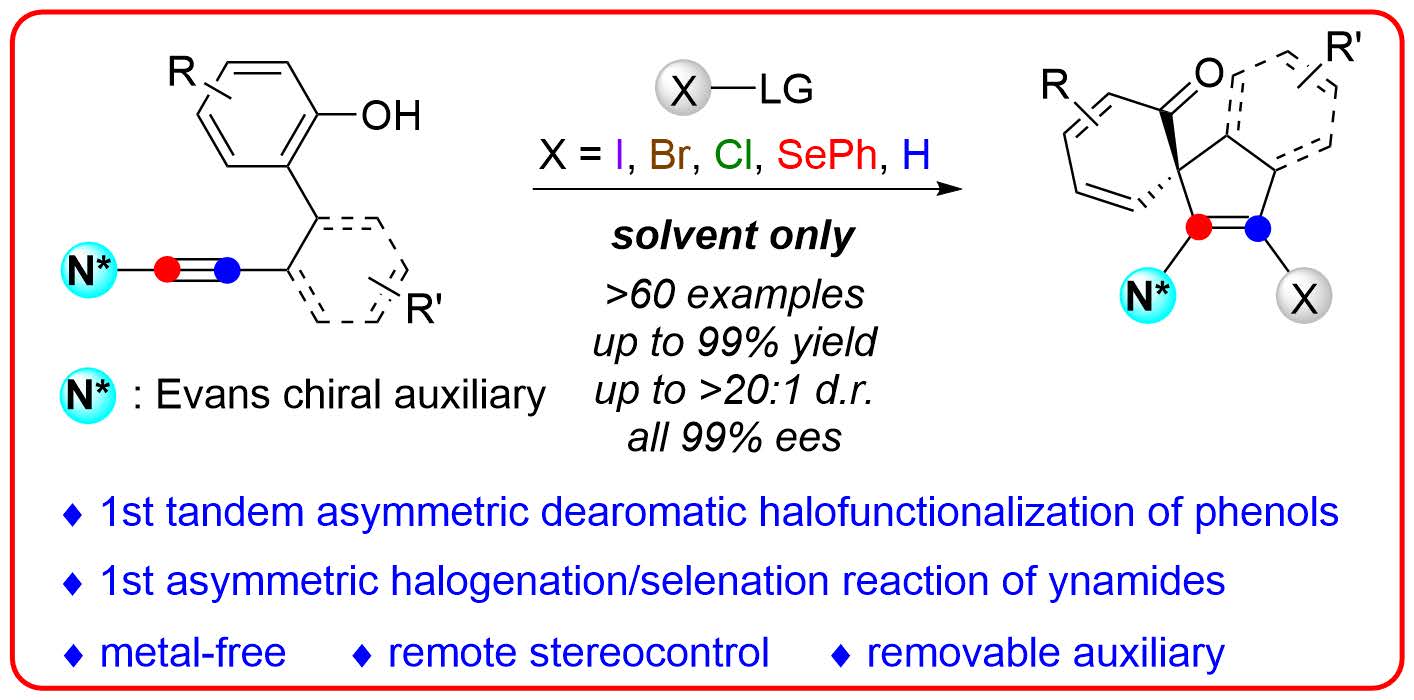 178. Tandem asymmetric dearomatized functionalization reaction of phenols with Evans-ynamides enabled by divergent electrophiles.