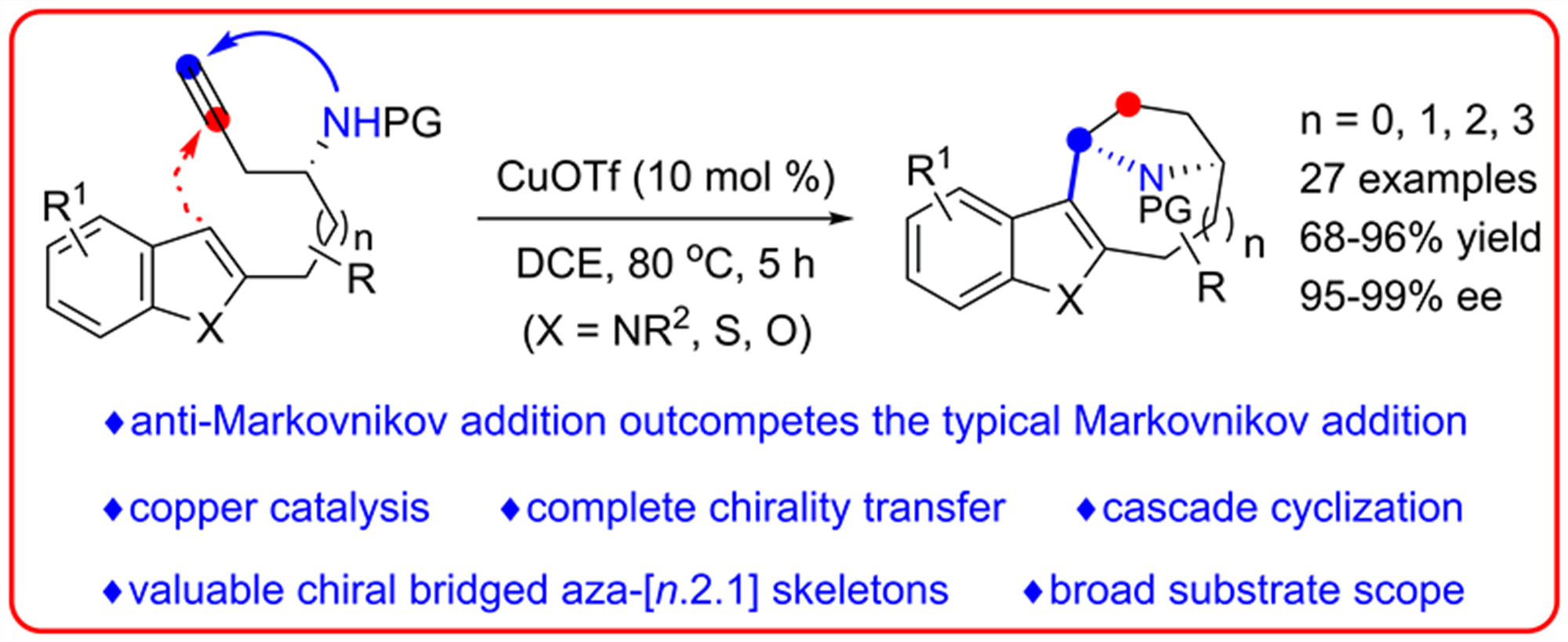 189. Divergent and Enantioselective Synthesis of Three Types of Chiral Polycyclic N-Heterocycles via Copper-Catalyzed Dearomative Cyclization.