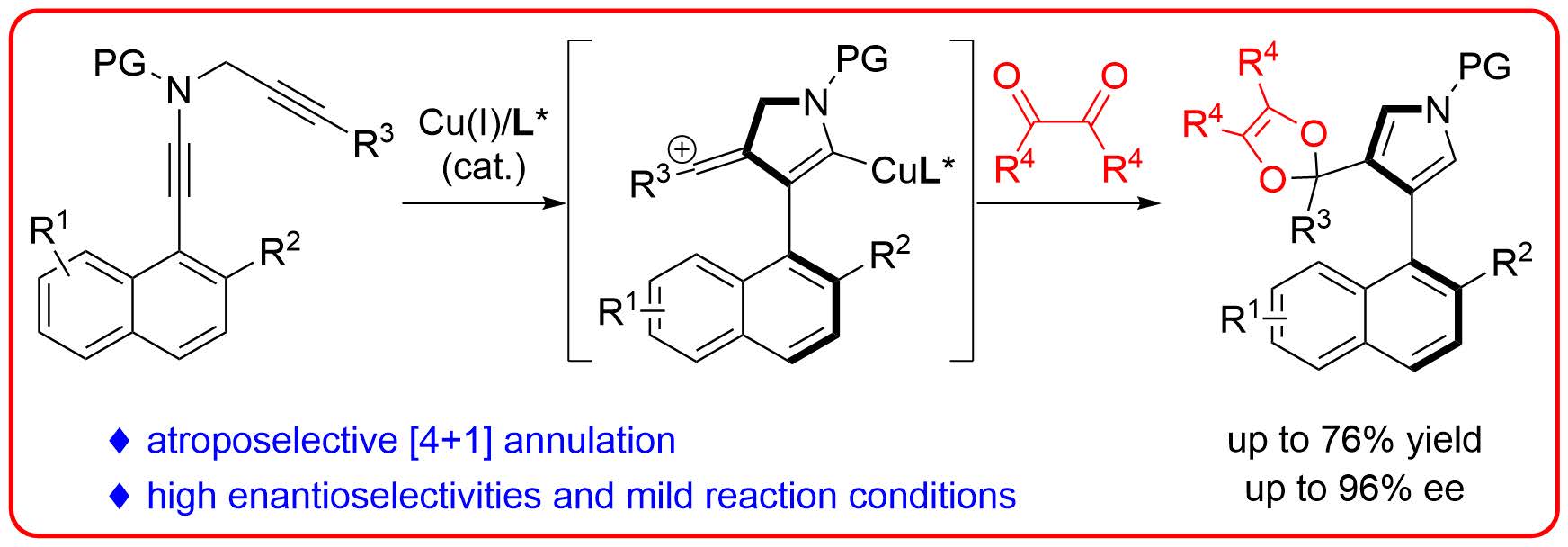 158. Copper-catalyzed atroposelective formal [4+1] annulation of 1,2-diketones with vinyl cations.