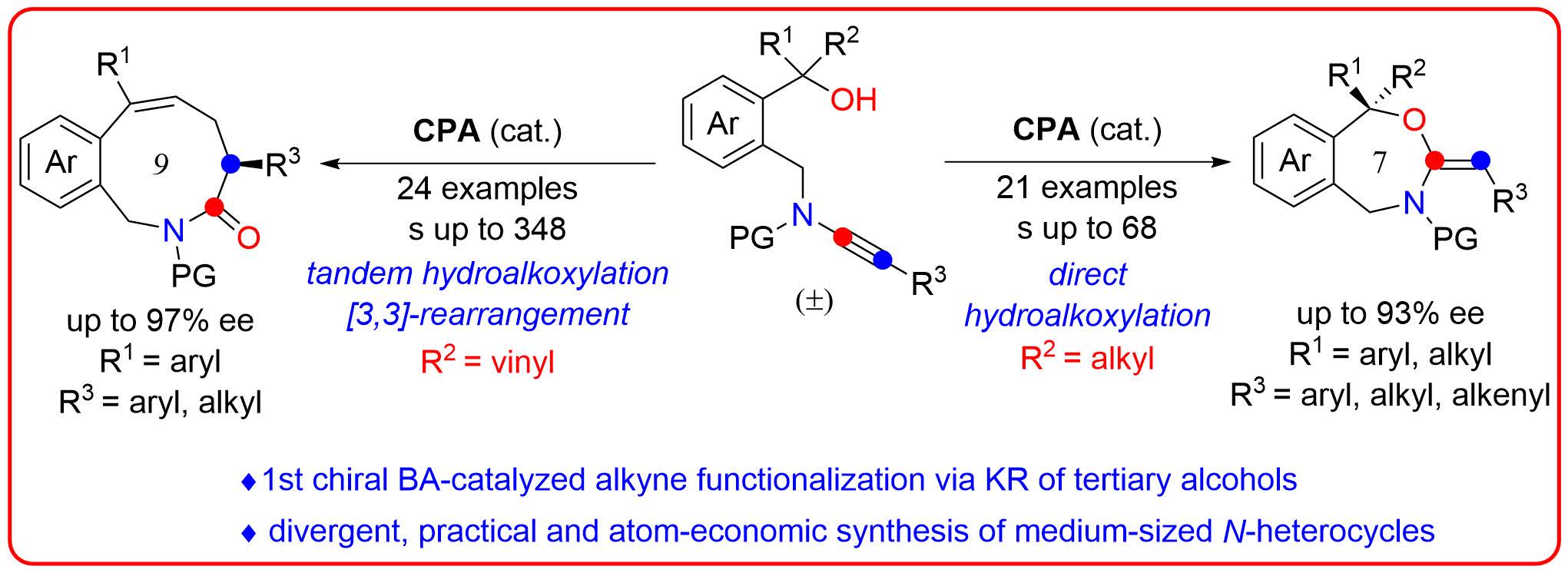 184. Chiral Phosphoric Acid-Catalyzed Kinetic Resolution of Tertiary Alcohol-Tethered Ynamides via Controllable Hydroalkoxylation.