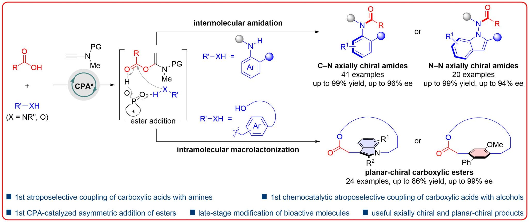 186. Brønsted Acid-Catalyzed Atroposelective Coupling of Carboxylic Acids with Amines and Alcohols via Ynamide Mediation.