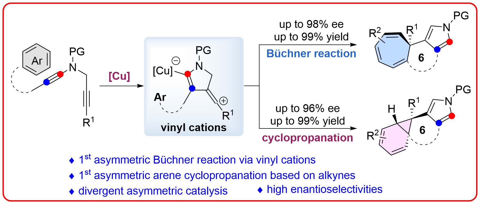 174. Asymmetric Büchner reaction and arene cyclopropanation via copper-catalyzed controllable cyclization of diynes.