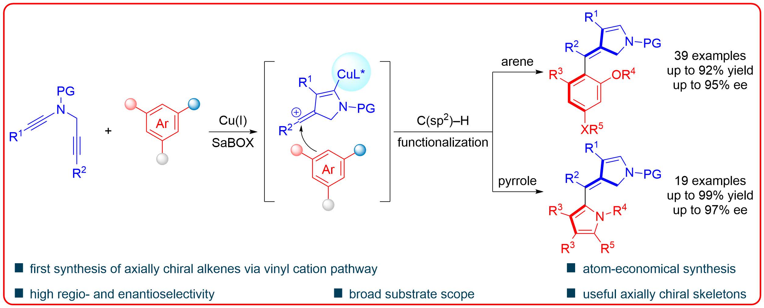 176. Enantioselective Synthesis of Axially Chiral Tetrasubstituted Alkenes by Copper-Catalyzed C(sp2)–H Functionalization of Arenes with Vinyl Cations.