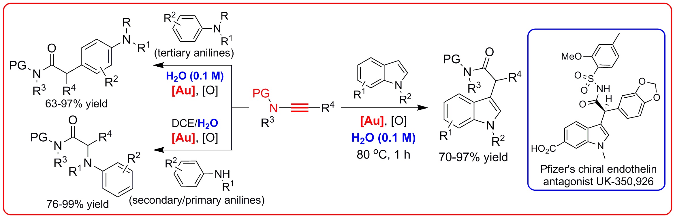 35. Generation of Gold Carbenes in Water: Efficient Intermolecular Trapping of the α-Oxo Gold Carbenoids by Indoles and Anilines.